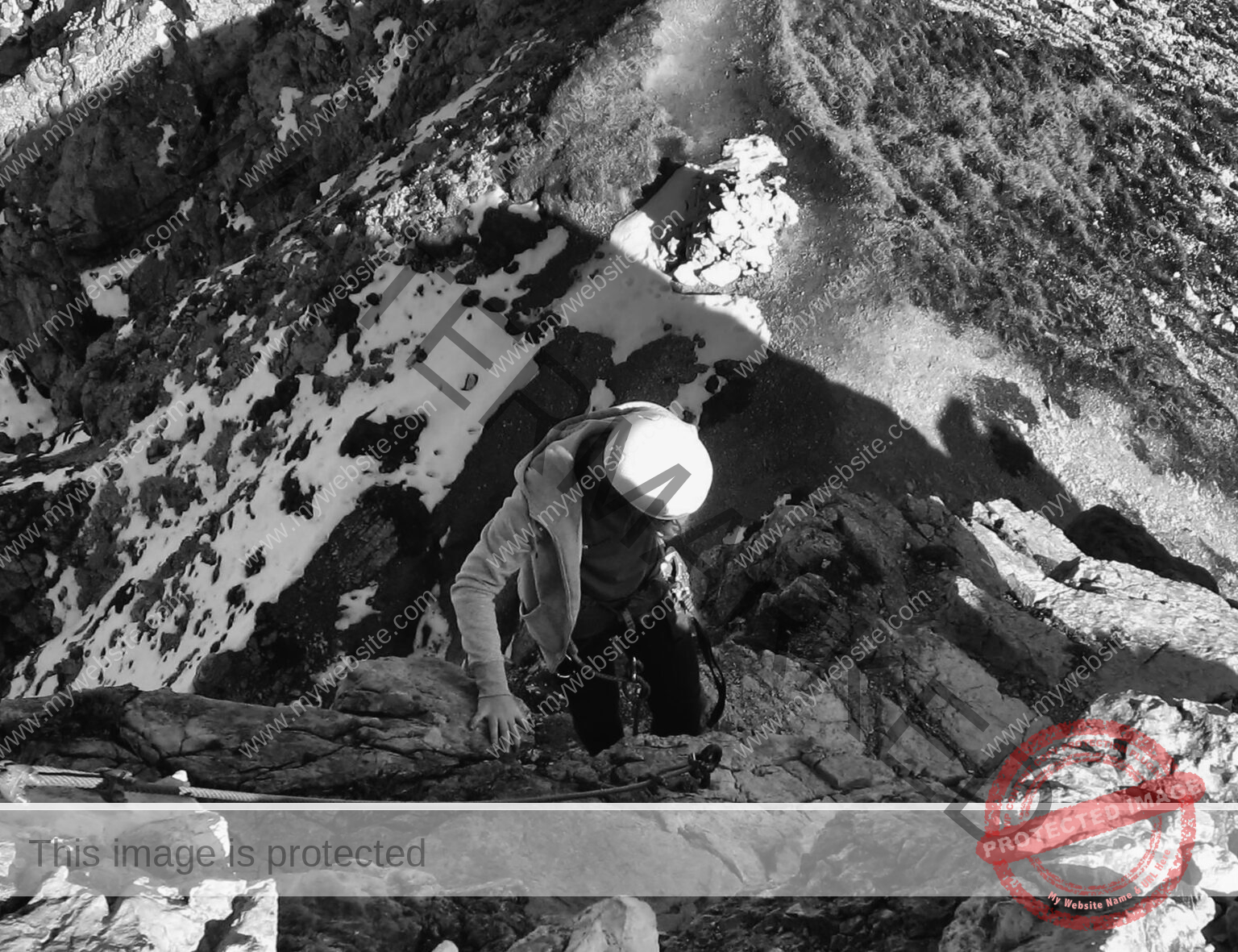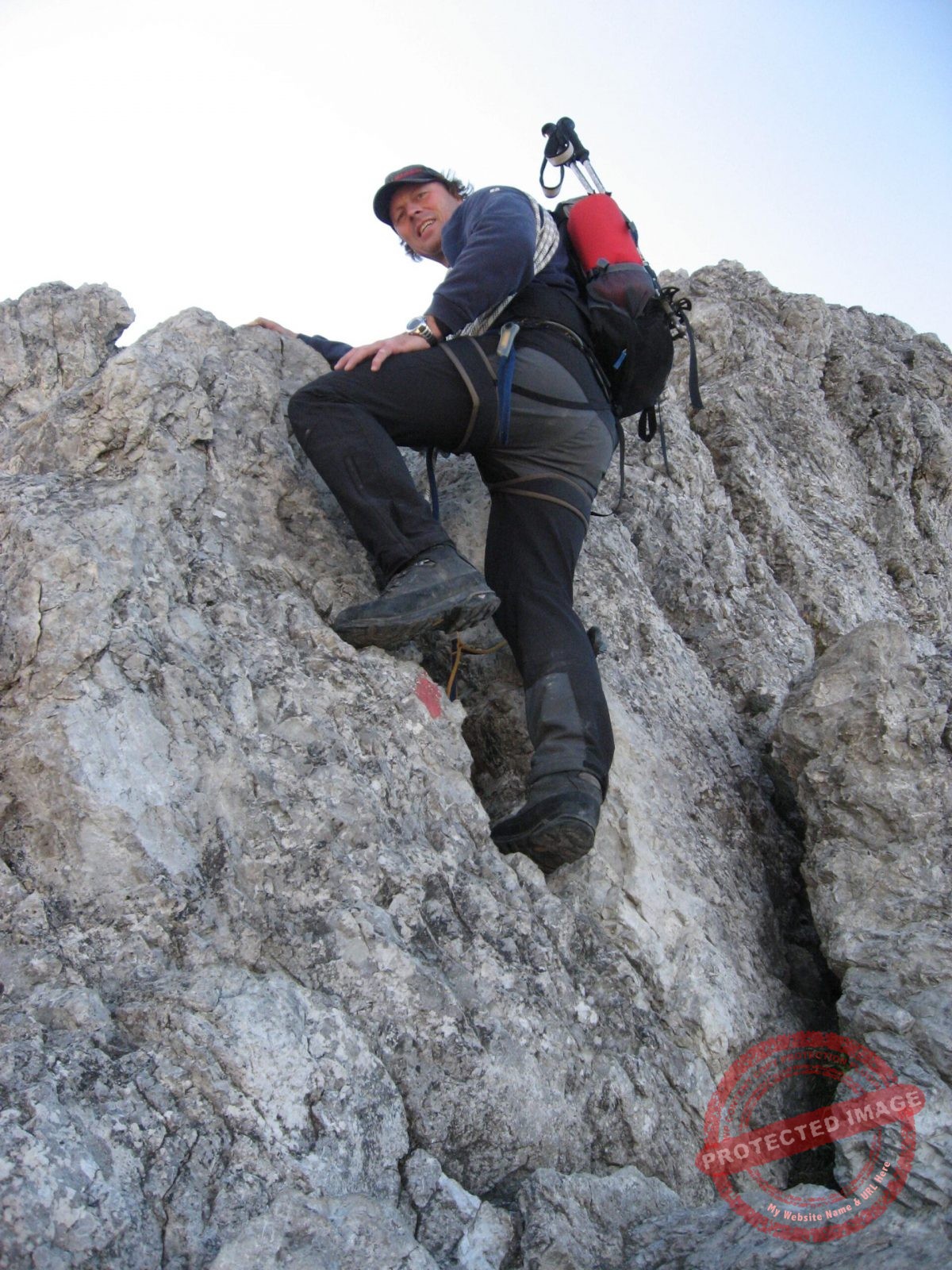 – – – then his grip sighed and broke: headlong he flew out of the mother wall and with him our climber, while a sharp stone smirking bit through the rope – – – – and only after a good five hundred meters he slapped like a ripe plum on a wide scree terrace. But dying, he still shouted to his companions:
